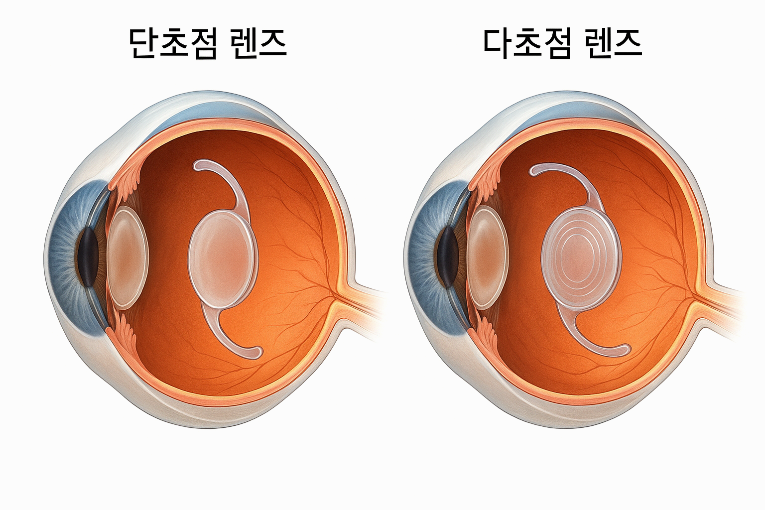 ✅ 망막병증, 당뇨망막증 등 동반 질환 보유자 → 단초점 렌즈가 가장 안전